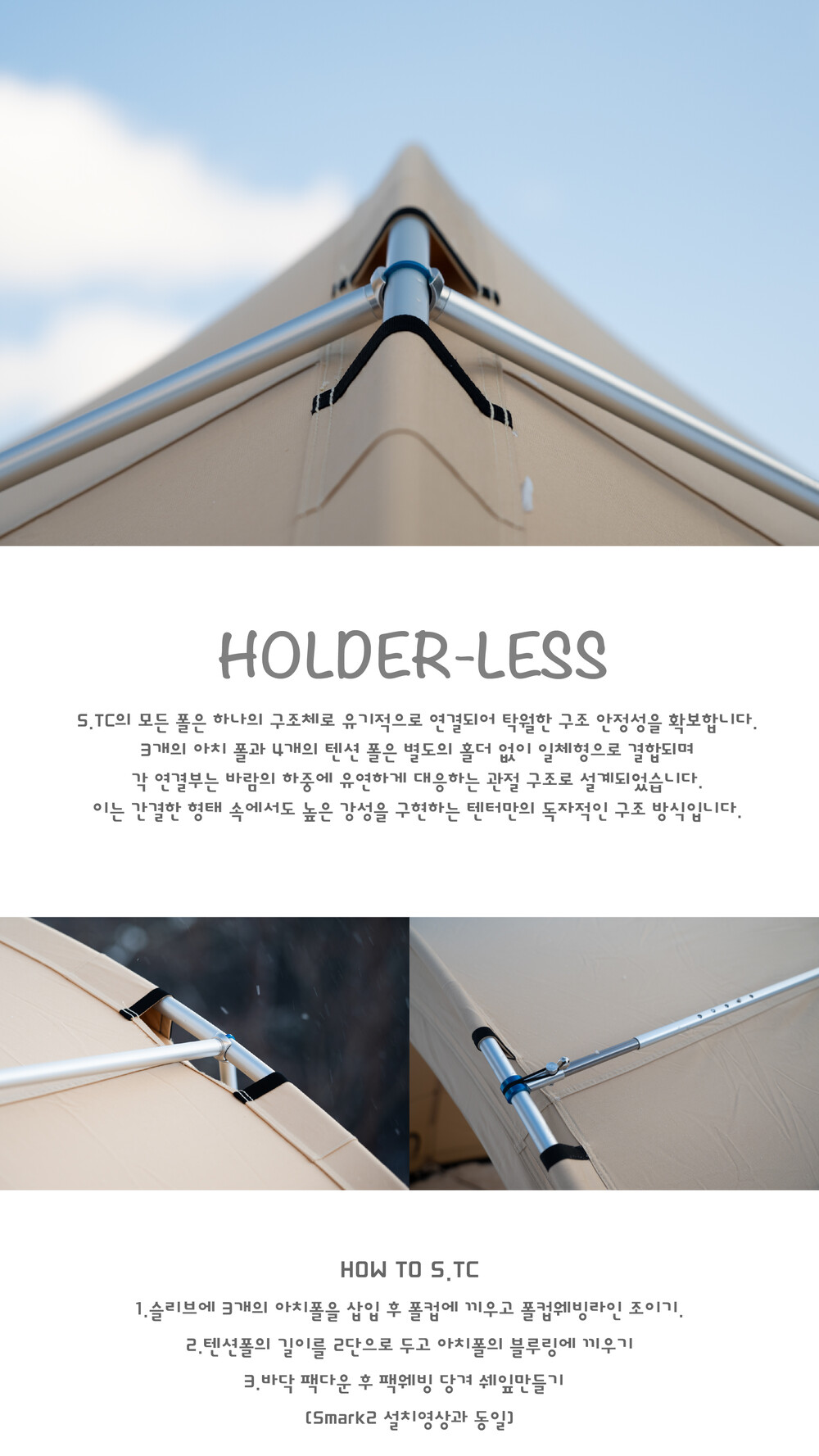 *V의 텐션폴을 S의 아치폴과 연결하는것이 특이점입니다.